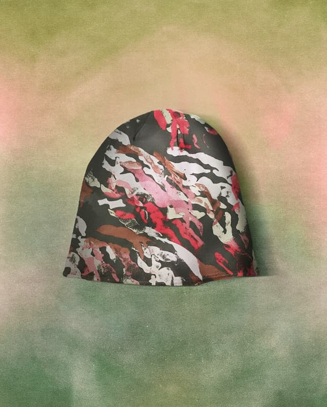 Kernen i kollektionen er et nyt, faded camouflage-mønster, der kommer i to farver: WAVE (hvid/grå) og CHERRY(oliven/rød). I stedet for klassisk jagt-camo går SKYLRK mere kunstnerisk og håndmalet til værks – som penselstrøg på stof. Mønstret går igen på hoodies og beanies og giver hele droppet en legende, men stadig clean streetæstetik.
